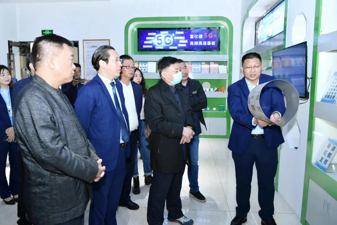 院士一行參觀了我司展廳,在參觀展廳過程中,陳初讀總經(jīng)理、張向宏總經(jīng)理、邵志偉總經(jīng)理分別向院士一行介紹了富仕德旗下“三大主題”系列產(chǎn)品:5G+高頻高速基板、SMC復合材料及其模壓結(jié)構(gòu)件以及特種功能紡織品。