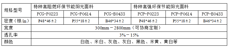普絲綸(PLASELUN )PCG-C、PCG-F、PCP-C系列特種功能性遮陽卷簾(窗簾)(陽光面料),不同于傳統(tǒng)的各式遮陽簾,窗簾;選用超細、高強、高阻燃等特種功能纖維,采用德國技術,德國設備,經(jīng)多道特殊嚴密工藝制備而成.該遮陽卷簾能有效阻隔太陽光和紫外線;過濾昡目日光,獲取自然光線,提高視覺舒適度;有效隔阻熱輻射,高效環(huán)保節(jié)能,改善室內(nèi)品質有益于健康,遮陽的同時阻隔紫外線防止室內(nèi)裝飾材料和物品的褪色和損壞。